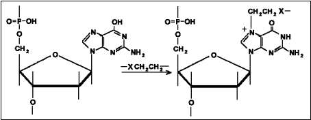 ![]() rys.3. 2 przypuszczalny mechanizm alkilowania DNA |