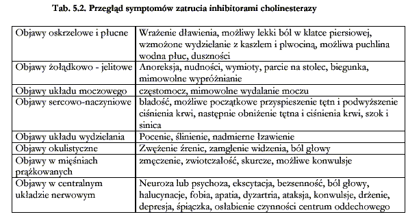 acetylocholinowego wskutek zahamowania aktywności