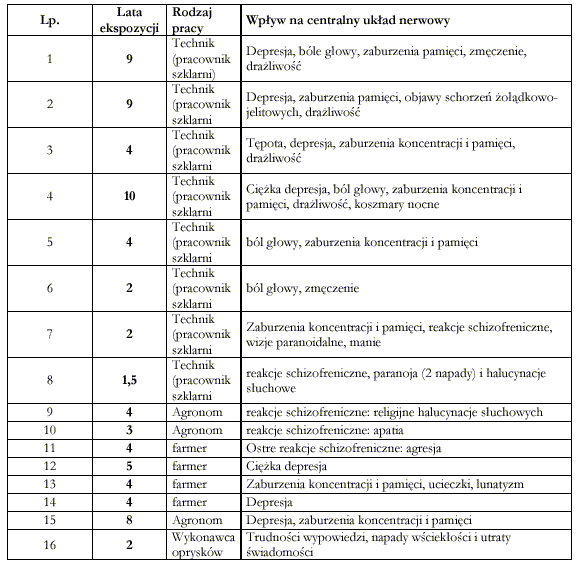 trucizn fosforoorganicznych. Znane są przypadki uszkodzeń